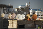 Wieczorem podziwialiśmy panoramę z dachu naszego hoteliku. Essaouira, to miasto dwupoziomowe - jeden poziom to poziom 0, uliczki itp, a drugi - dachy. Duża część życia toczy się właśnie na owych dachach.